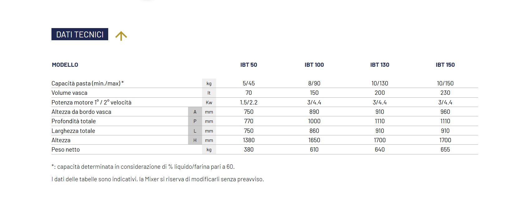 IMPASTATRICE A BRACCI TUFFANTI A VASCA FISSA
